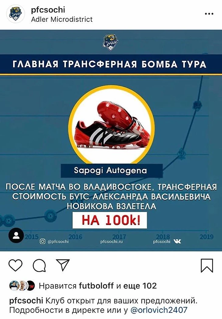 Футбольный клуб «Сочи» продолжает удивлять. Команда будто всеми силами и средствами просит, чтобы на нее обратили внимание. Лучшая по количеству забитых голов, абсолютный лидер по набранным в этом году очкам и одна из самых сухих команд весеннего отрезка чемпионата создает все новые и новые инфоповоды, чтобы о ней говорили чаще.