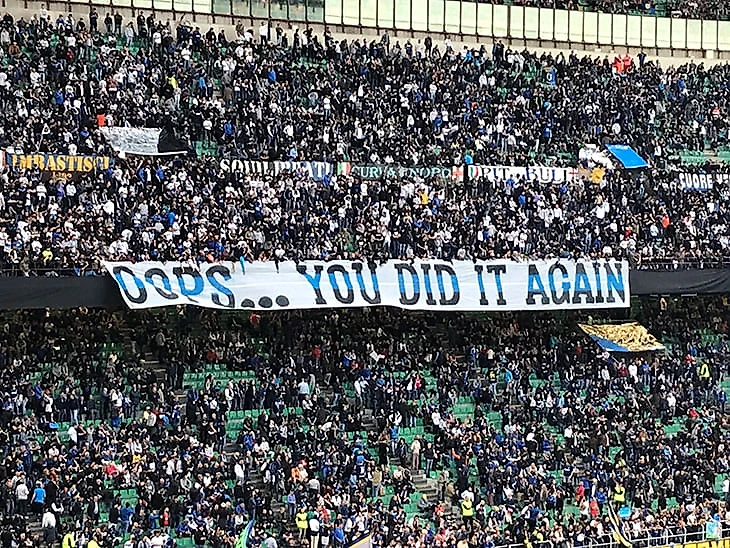 Game Over и стиральный порошок Ajax: фанаты «Интера» поиздевались над вылетом «Юве» из ЛЧ
