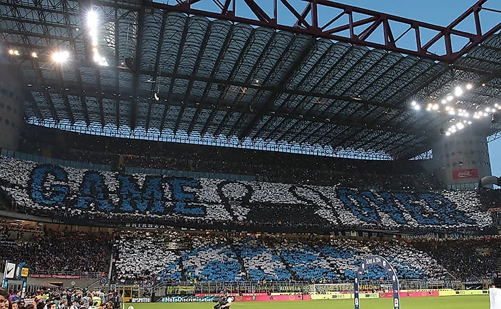 В Италии «Интер» сыграл вничью с «Ювентусом» (1:1) на «Сан-Сиро», перед матчем фанаты хозяев устроили масштабный перфоманс.