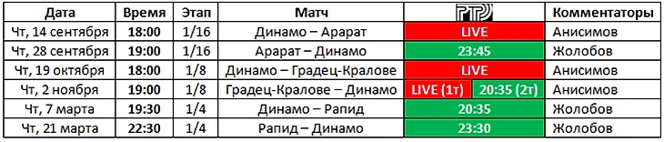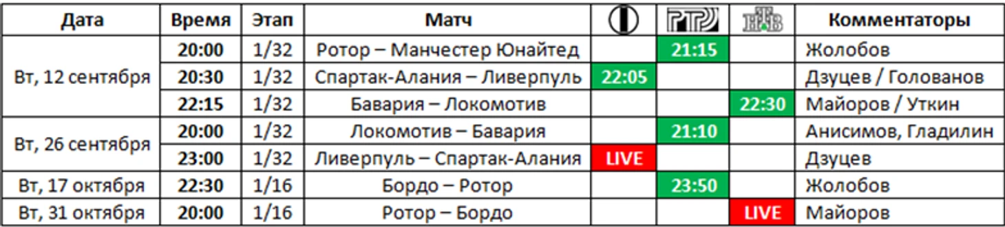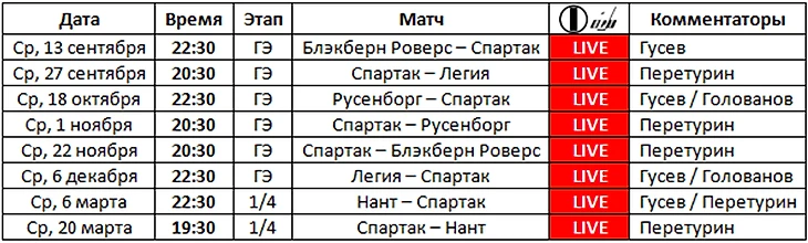 Перехожу к таблицам. Время начала матчей и эфиров московское.