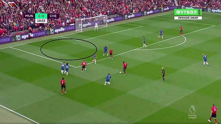 Главное и ключевое это прессинг Юнайтед на первых минутах. Челси почти не мог выйти за среднюю линию: при розыгрыше мяча хозяева прессинговали интенсивно и с персональными ориентировками.