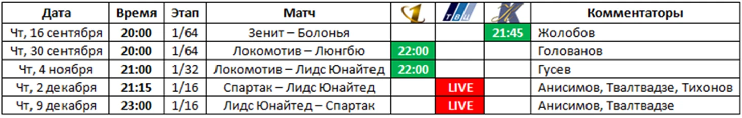 Переходим к таблицам. Время начала матчей и эфиров московское.
