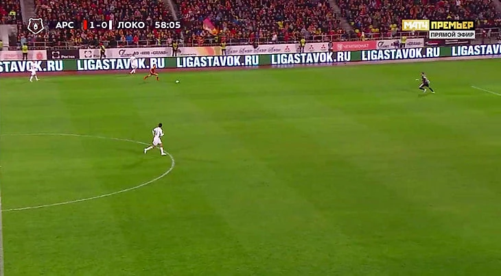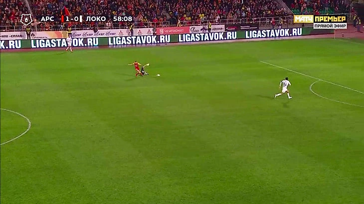 Тульским игрокам оставалось просто выносить мяч. Один из таких выносов ушел на фланг. На мяче было два защитника «Локо» – Владислав Игнатьев и Соломон Кверквелия.