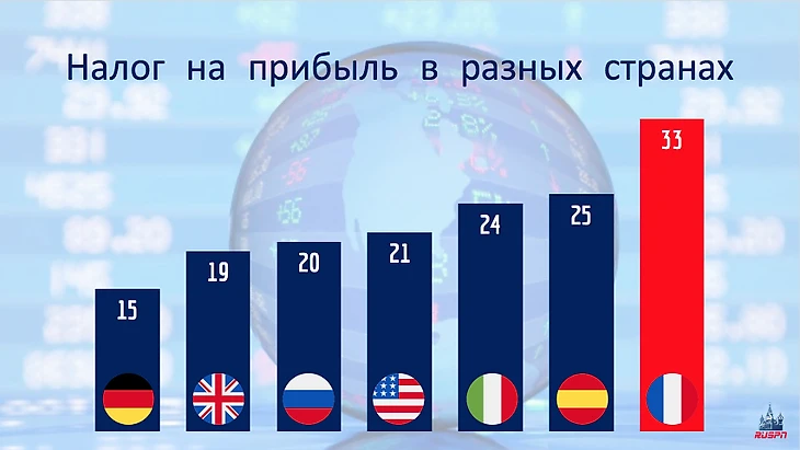 Но возможно самый сильный удар – это налог на прибыль. Во Франции он составляет 33 процента. Для сравнения: