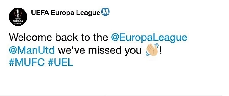 Официальный твиттер Лиги Европы приветствует «Манчестер Юнайтед».