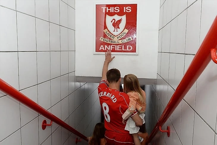 Вы хоть раз в жизни обязательно видели такую картину: коридор под трибунами «Энфилда», крупные планы игроков, дети – потом по команде судьи и под ободряющие слова партнеров все спускаются по лестнице, а игроки в красном по пути трогают табличку, которая висит над проходом. На табличке: This is Anfield.