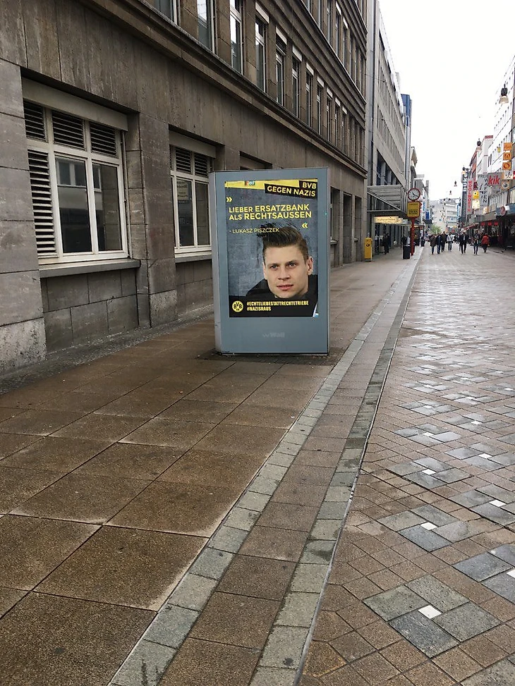 Поэтому никто не удивился, когда перед домашним матчем с «Фортуной» (3:2) на улицах Дортмунда появились плакаты с игроками клуба и лозунгами против нацизма.