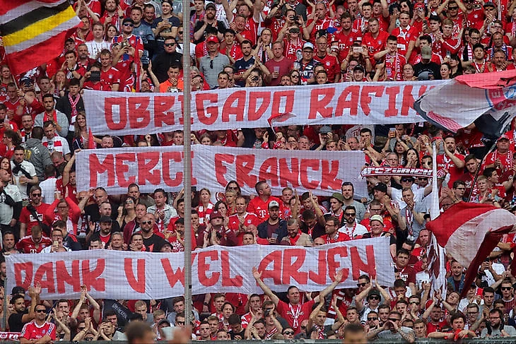 В последнем матче сезона «Альянц-Арена» провожала легендарную пару и благодарила Рафинью, подписавшего контракт с «Фламенго».
