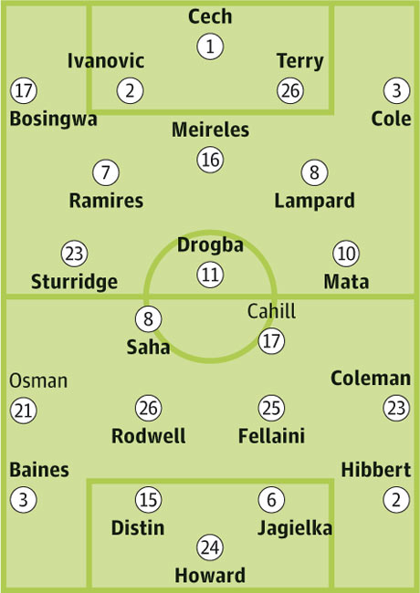 Запасные: Тернбулл, Феррейра, Алекс, Микел, Бертранд, Давид Луиз, Ромеу, Макихран, Малуда, Анелька, Лукаку, Калу