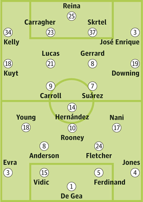 При всем интересе матча «Уиган-Болтон» в Куала-Лампуре, наиболее ожидаемым дерби является поединок на северо-западе, где «Ливерпуль» попытается приумножить навалившиеся на Уэйна Руни беды, домашней победой над «Манчестер Юнайтед». Энфилд будет буквально упиваться несчастьем Руни в матче за сборную, но несмотря на это вновь обратиться к своему боевому характеру. Сэр Алекс Фергюсон должен хорошо помнить прекрасную игру Луиса Суареса в аналогичном матче прошлого сезона, так что тренеру гостей нужно позаботиться об собственной обороне. Это будет 250 матч для Кенни Далглиша в Премьер-лиге, и он может похвастаться самым большим количеством победу с «Ливерпулем» - 150.