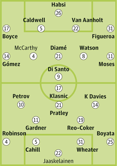 Запасные: Дони, Джонсон, Аггер, Хендерсон, Родригес, Спиринг, Уилсон, Флэнаган, Спиринг, Адам, Робинсон, Коатес, Беллами, Аурелио, Коади