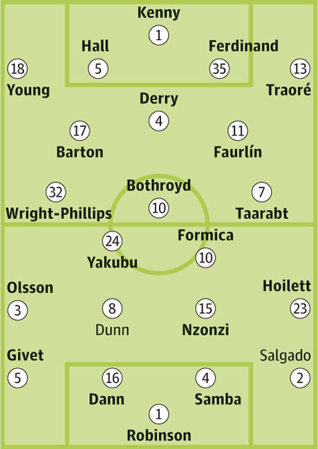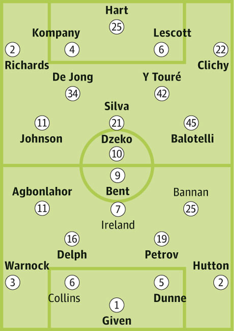 Запасные: Пантиллимон, Тэйлор, Сабалета, Коларов, Савич, Разак, Онуоха, К.Туре, Милнер, Агуэро, Харгривз, Насри, Бэрри