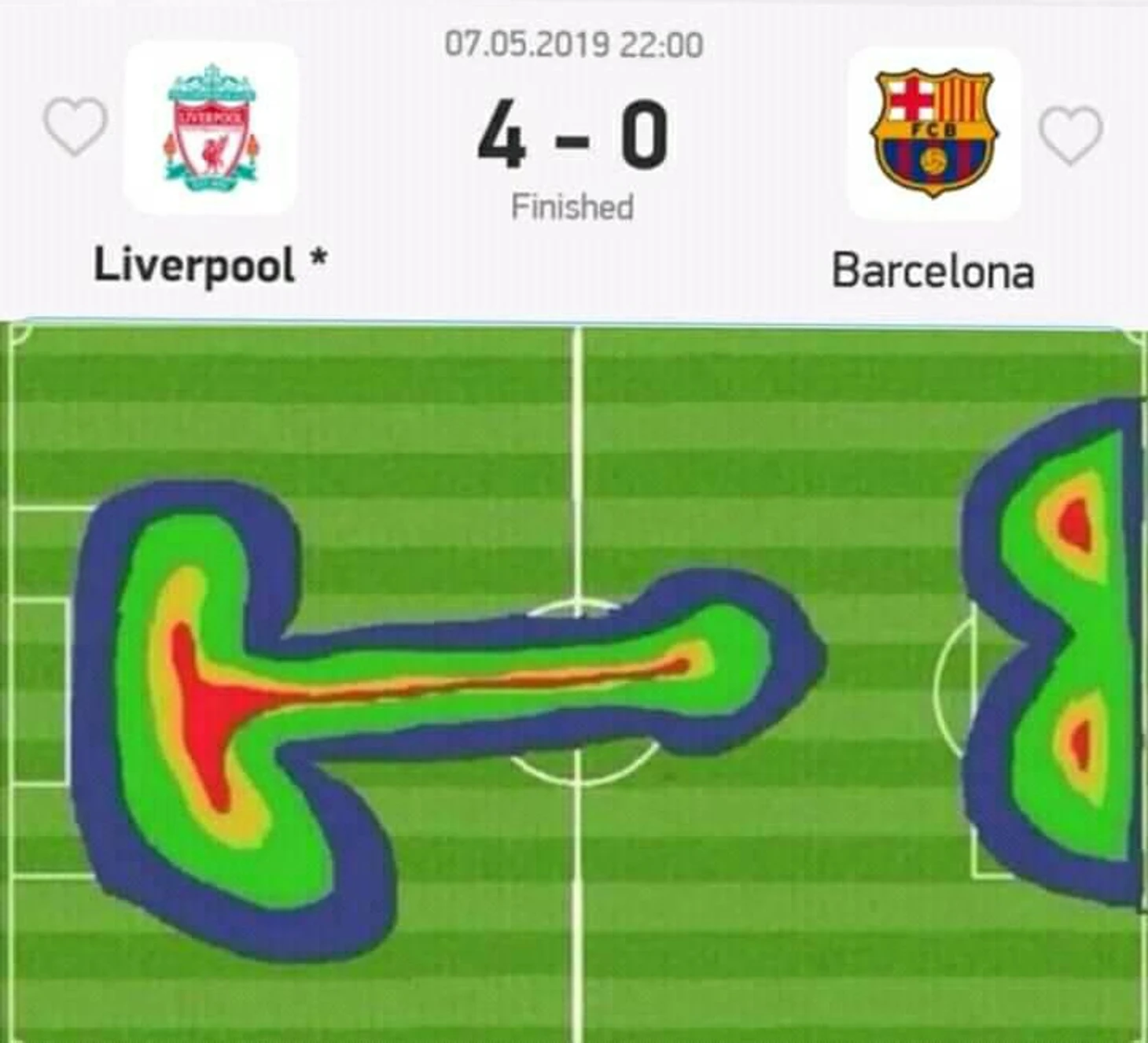 Тепловая карта перемещений Ливерпуля и Барселоны