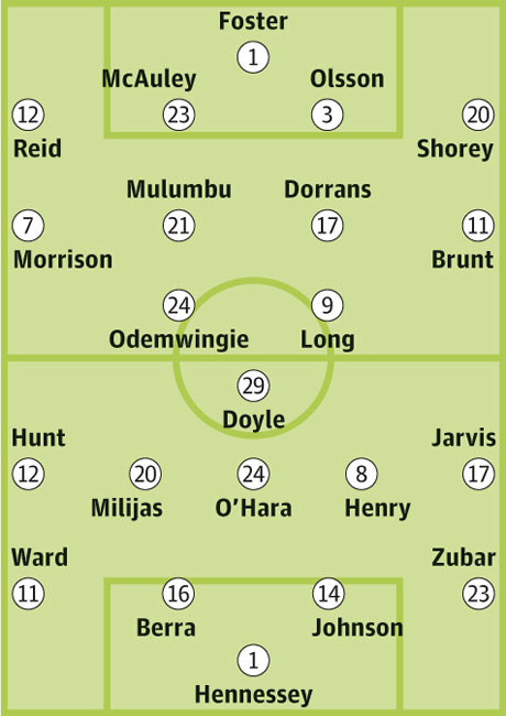 Запасные: Вествуд, Кук, Лэйнг, Коулбек, Уикхем, Макклин, Мейлер, Вон, Ангелери, Лидл, Р. Нобл