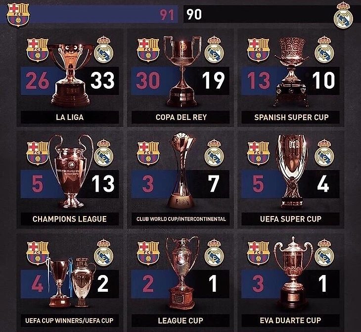 Все трофеи «Барселоны» и «Реала»
