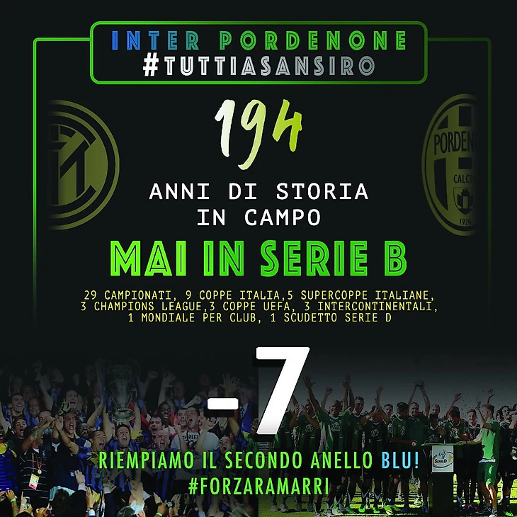 Миланский «Интер» единственный итальянский клуб, который ни разу не вылетал из Серии А в низший дивизион. Болельщики «нерадзурри» любят повторять фразу «Никогда не были в Серии Б». «Порденоне» также ни разу не выступал во второй по силе итальянской лиге, однако, здесь ситуация диаметрально противоположная. Клуб из региона Фриули никогда не поднимался до таких высот.