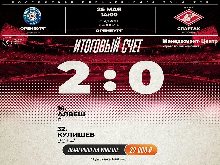«Оренбург» — «Спартак» — 2:0 (1:0)