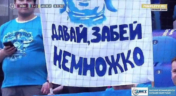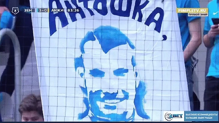 Заболотный после матча с «Енисеем» забрал на память у фанатов баннер «Антошка, давай, забей немножко»