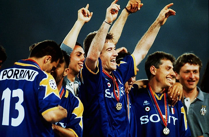 Синяя форма – норма для «Ювентуса». В такой «Юве» одержал последнюю победу в Лиге чемпионов (сезон-1995/96). Дель Пьеро и Виалли играли в синих футболках с желтыми звездами на плечах.