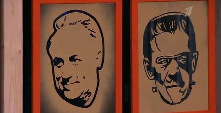Суть – выселить злодеев из дома, выбив их портреты мячом. Артем отлично справился, правда, зацепил Семака.