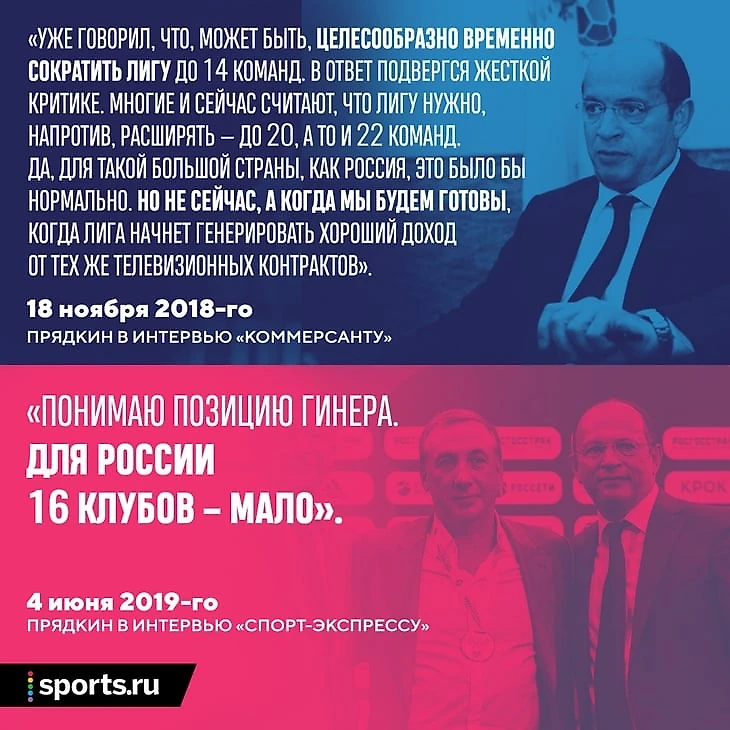 В ноябре Прядкин предлагал сократить РПЛ до 14 команд. Сейчас увеличивает до 18