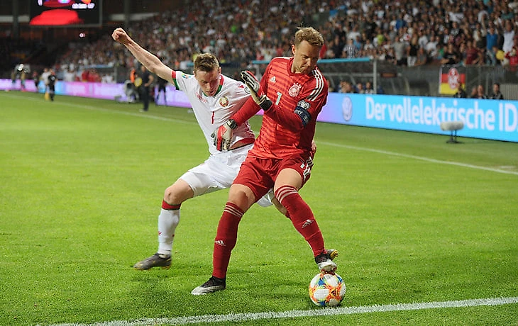 Сборная Германии уверенно разобралась в гостях с Беларусью в матче отбора к Евро-2020 – забили Сане и Ройс, но главный момент не голы, а трюк Нойера за пределами штрафной.