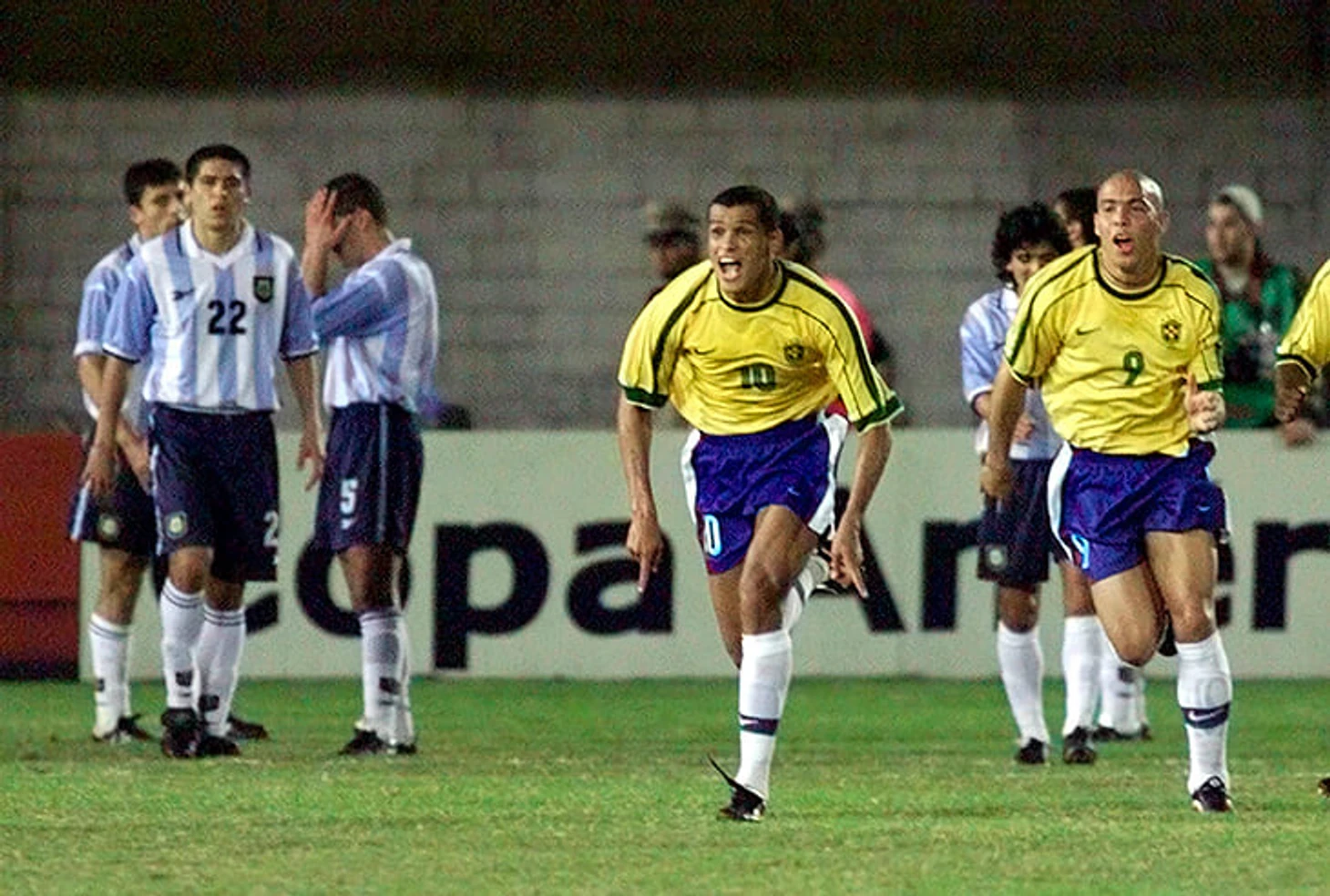 После разочаровывающего ЧМ-1998 аргентинцы привезли основу на Копу-1999, но в четвертьфинале снова уступили бразильцам, за которых тогда дебютировал 19-летний Роналдиньо. 2:1. Ривалдо и Роналдо забили, а Дида вытащил в концовке пенальти от капитана аргентинцев Айялы.