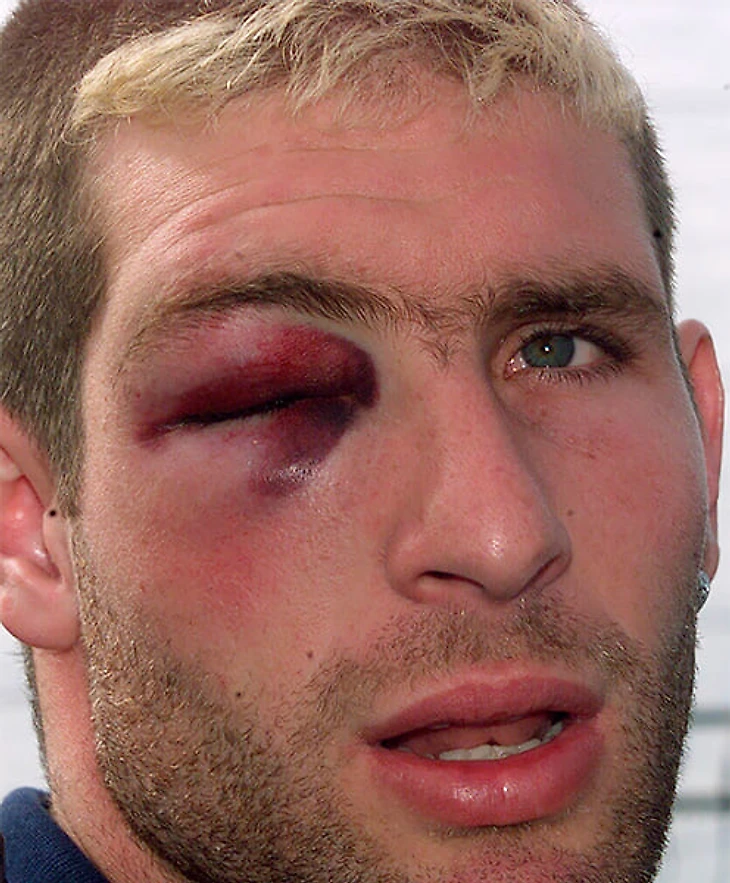 А против Бразилии рубился с полностью заплывшим глазом, который травмировал в матче с уругвайцами.