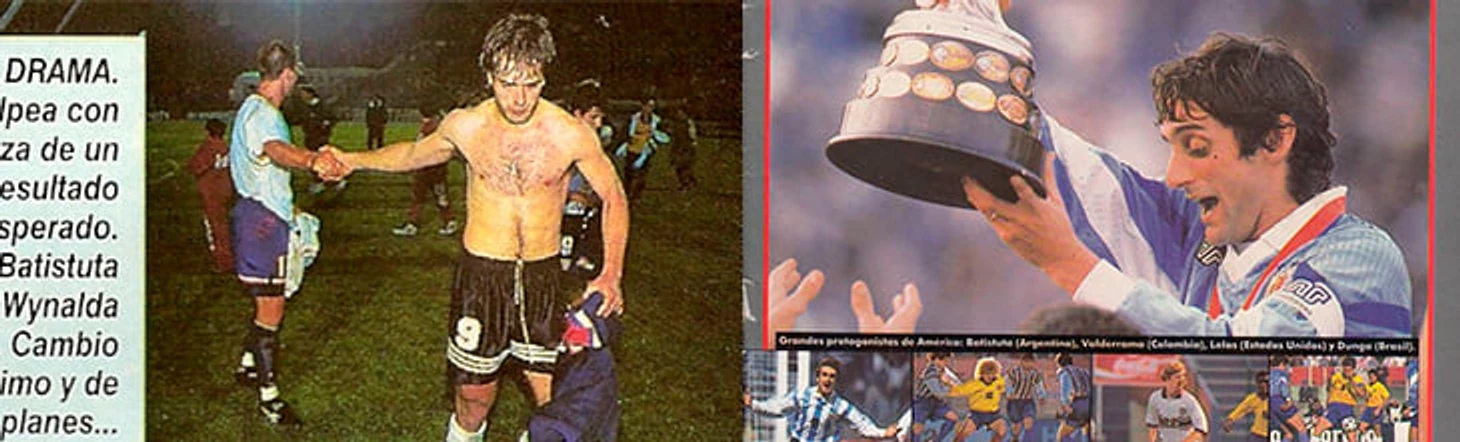 С 1995 года начались проблемы. Батистута снова стал лучшим бомбардиром, но аргентинцы в последнем матче группы крупно уступили США и в четвертьфинале попали на Бразилию с капитаном Дунгой, совсем юным Роналдо и еще не перебравшимся в Европу Роберто Карлосом. Бразилия победила в серии пенальти – Таффарел отразил удар Диего Симеоне. Домашний турнир выиграла сборная Уругвая с Энцо Франческоли.