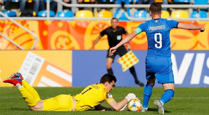 Алессандро Плиццари, 2000 г.р., отбивший уже 2 пенальти и подтвердил статус хорошего специалиста по отражению 11 метровых ударов, который он получил на прошлом ЧМ этой категории в 2017 году, отразив в матче за третье место 2 пенальти и заработав бронзу ЧМ для Италии. Вратарь, принадлежащий Милану и проведший больше матчей в сборных, куда он регулярно вызывался, чем в своей команде U-19 в чемпионате Примавера. Следует отметить, что Плиццари находится в составе главной команды клуба, но при этом крепко сидя третьим-четвертым номером за плечами братьев Дрнаруммы и Пепы Рейны. Несмотря на поступающие запросы от клубов на приобретение голкипера (трансфермаркт его оценивает в 2,5млн), Милан не намерен с ним расставаться, но, на мой взгляд держать на лавке будущую замену Джиджи Доннарумме не продуктивно. Считаю, что аренда по 6-12 месяцев в клуб серии Б будет правильным решением. А ЧМ как дополнительная витрина ему только поможет.