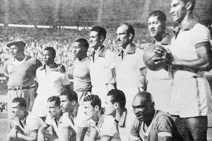Последний раз в бело-синей форме Бразилия играла в 1950 году на домашнем ЧМ: тогда все ждали победы хозяев, но в решающем матче неожиданно выиграл Уругвай. После этого форму признали несчастливой – вместо нее придумали желтую, в которой бразильцы и выиграли 5 чемпионатов мира.
