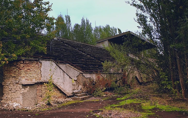 Город теперь город-призрак, с большим количеством мест, для исследования – в том числе стадион Авангард. Арена на 5000 мест, расположенная рядом со знаковым парком развлечений и колесом обозрения, которые находятся в топе изображений, когда вы вводите «Припять» в Google. Он был назван Авангардом в честь одноименного профсоюзного спортивного общества.