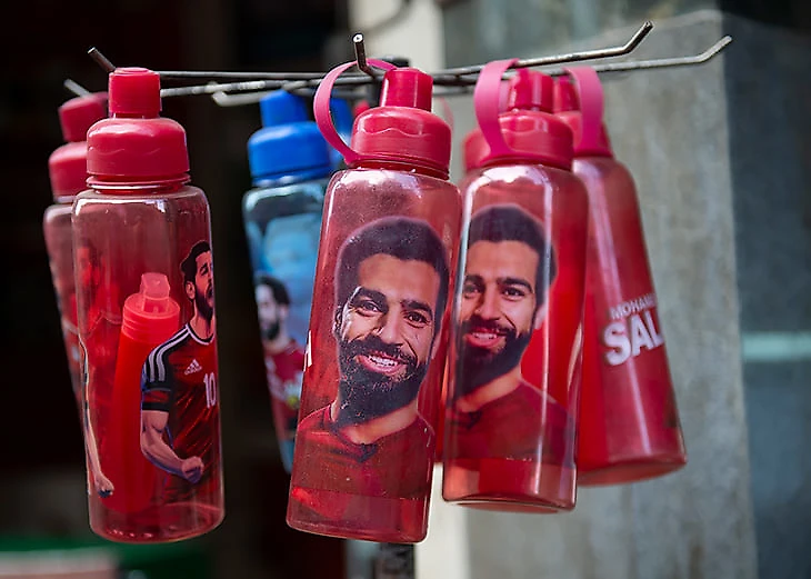 Портрет Салаха – везде. Даже на бутлыках для воды. В Египте сейчас страшно жарко, днем температура поднимается до +37 градусов, и в матчах Кубка Африки предусмотрено четыре остановки, чтобы игроки могли охладиться и попить.