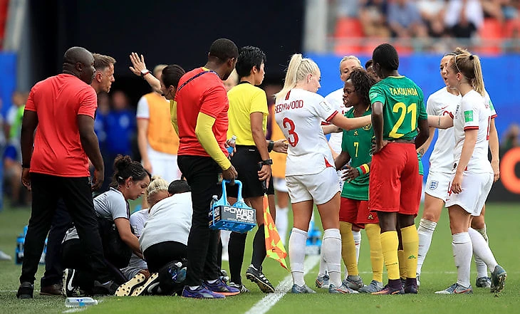 Камерунские футболистки психанули в матче с Англией. Протесты против VAR, плевок в соперника, отказ разыгрывать мяч после гола