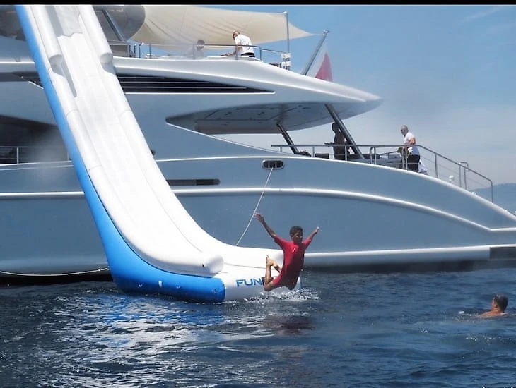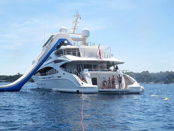 Яхта с водяной горкой, с которой спускались Криш с сыном: