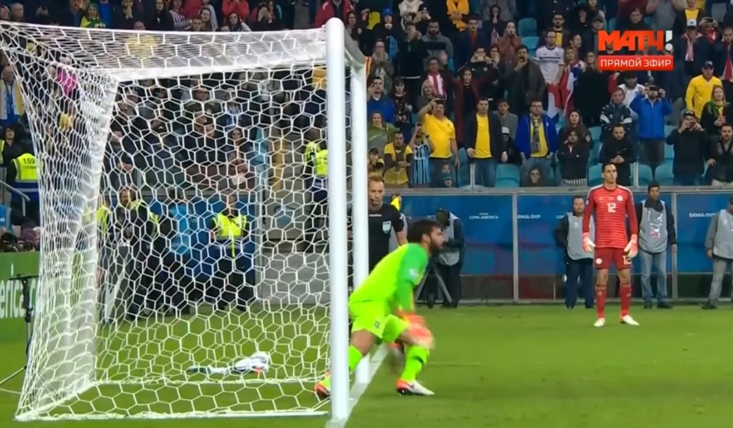 Месси бил в тот же угол, в который забил со штрафного в полуфинале ЛЧ, но Алиссон достал мяч без паники. Лео не может забить бразильскому киперу вторую игру подряд.