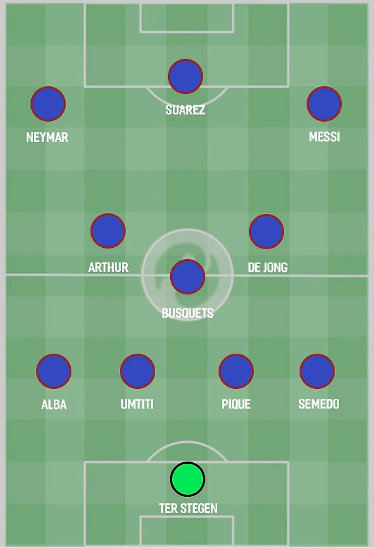 Что ж тогда, они, скорее всего, продолжат играть по любимой схеме Эрнесто Вальверде 4-4-1-1 с Клеманом Лангле в роли напарника Жерара Пике. Френки займет место в центре поля ближе к левому флангу — эта роль даст ему достаточное количество свободы, чтобы ходить в атаку. Остальная команда будет функционировать так же, как и сейчас, предоставляя Ракитичу, Суаресу и Коутиньо гораздо больше игровых минут, чем молодым и быстрым игрокам. Ну и, конечно, им придется полагаться на магию Месси.