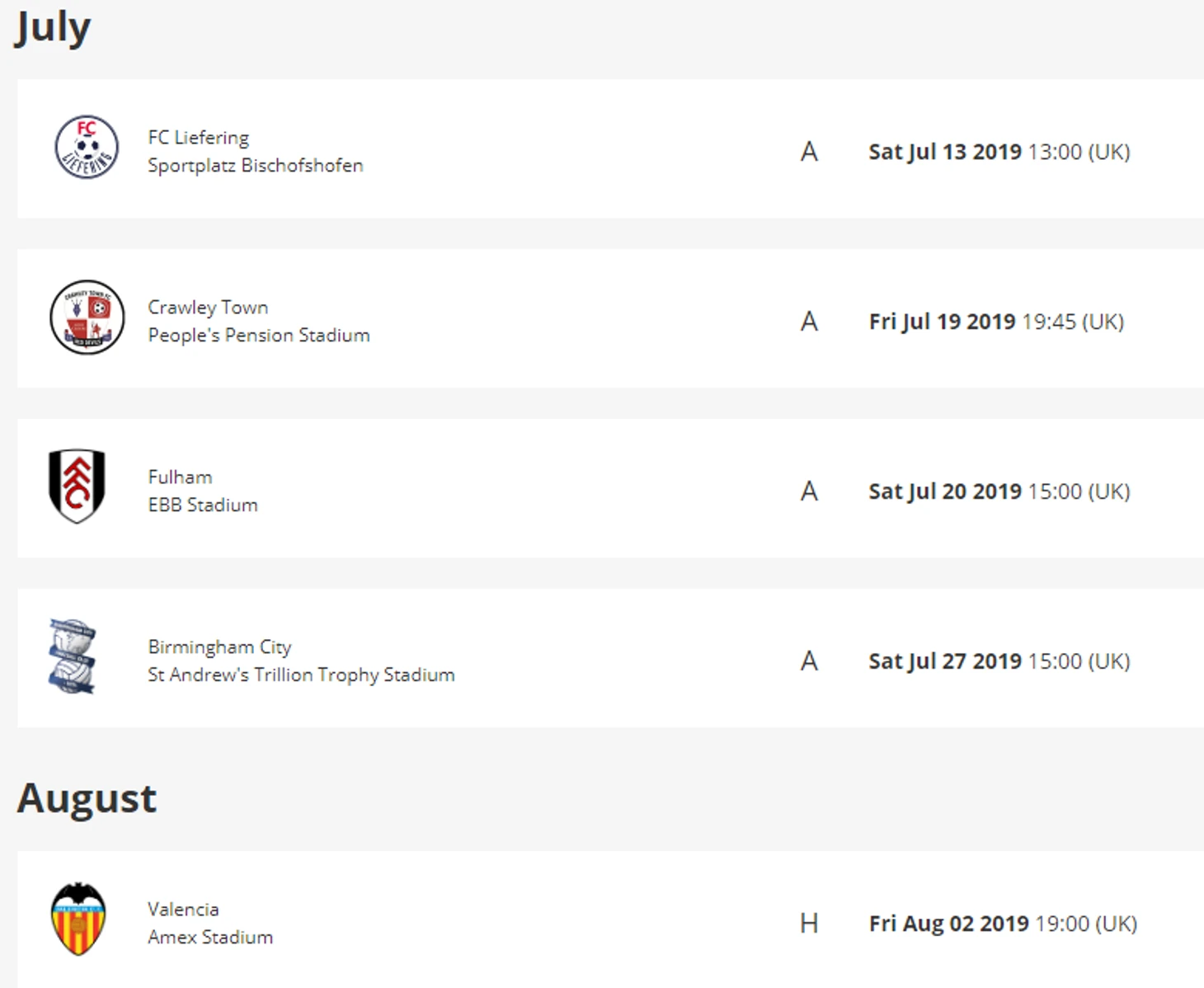 Календарь предсезонных матчей Брайтона вашему вниманию: