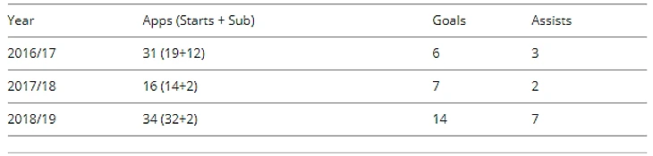 Статистика Троссарда в его бывшем клубе - Генке, такова: