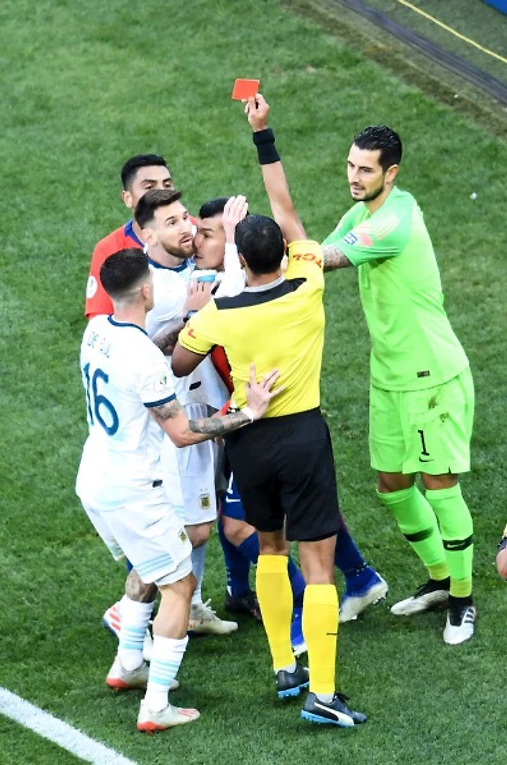 Несмотря на хорошую игру сборных, матч не обошёлся без скандалов. На 37 минуте произошёл спор между Месси и Меделем, в ходе которого оба потолкались и за что были награждены прямой красной карточкой. "Я думаю, что они дали мне красную карточку из-за моих предыдущих слов о судействе на Кубке Америки. Я всегда говорю правду, это меня успокаивает»-сказал Месси в послематчевом интервью.