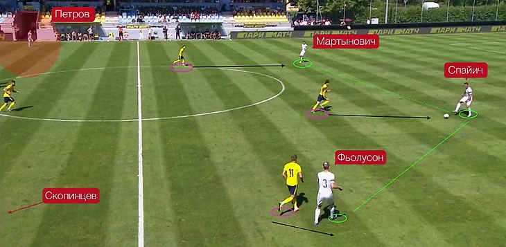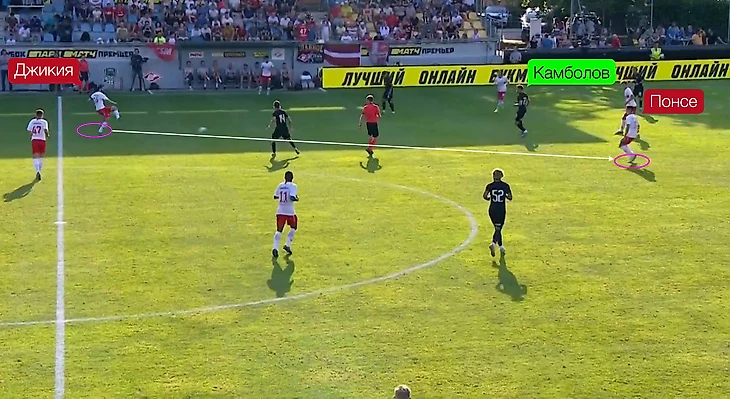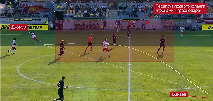 Но возникла другая проблема. Собственный прессинг не был достаточно интенсивен. Джикия получал слишком много свободы и раскидывал то диагонали на Бакаева, который уничтожал финтами и скоростью беднягу Стоцкого: