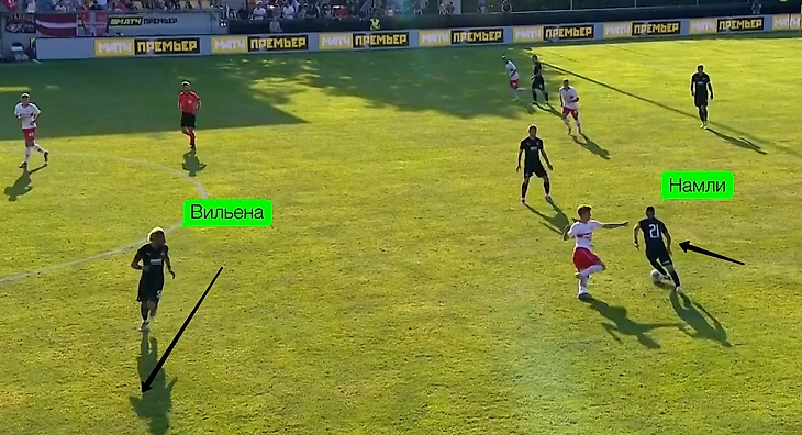 Возможно, Мусаеву стоит подстроиться под эту особенность и, к примеру, поменять местами Намли и Вильену. Вопрос в оборонительном балансе. Несомненно, Мусаев рассчитывает на Вильену в том числе как на игрока, способного за счёт объёма регулярно помогать тушить контратаки.