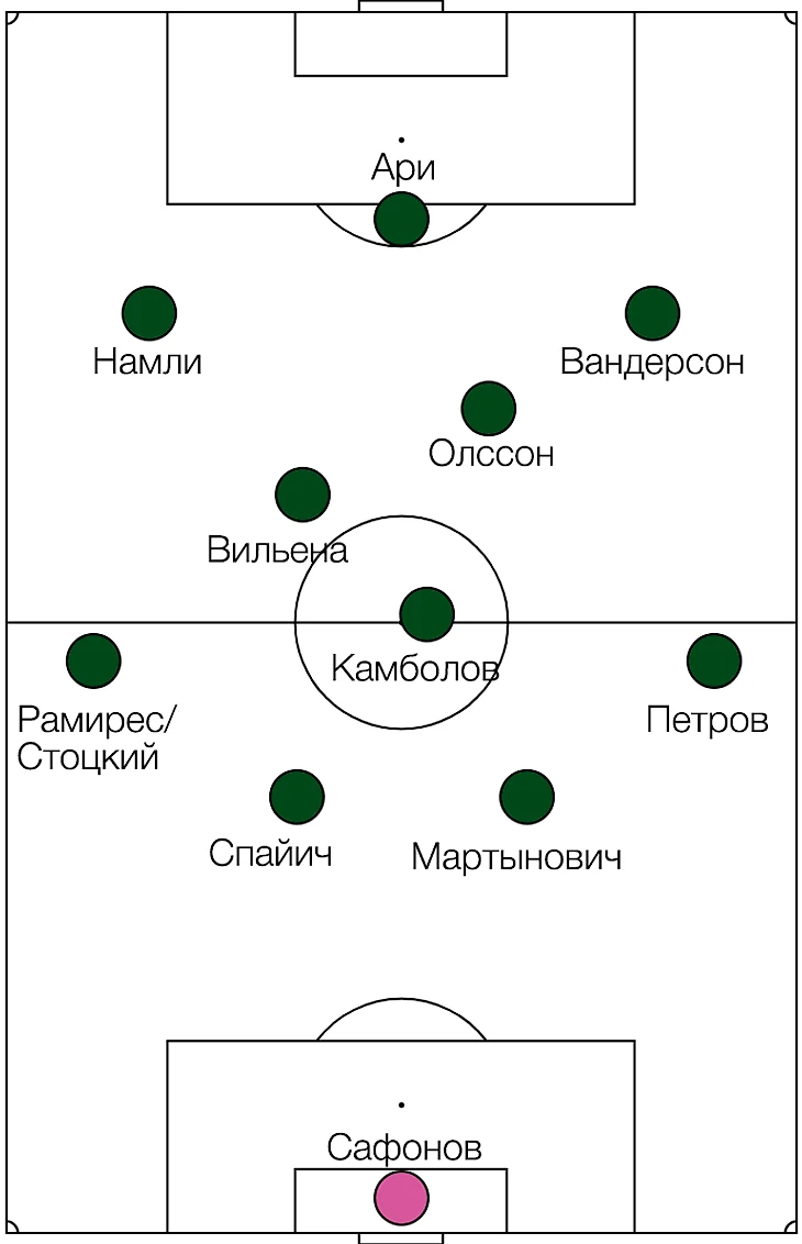 К матчу со Спартаком сформировалось сочетание в центре поля, которое, видимо, и начнёт сезон. Тонни Вильена влился в команду и занял место левого центрального полузащитника, Олссон расположился выше в креативной зоне.