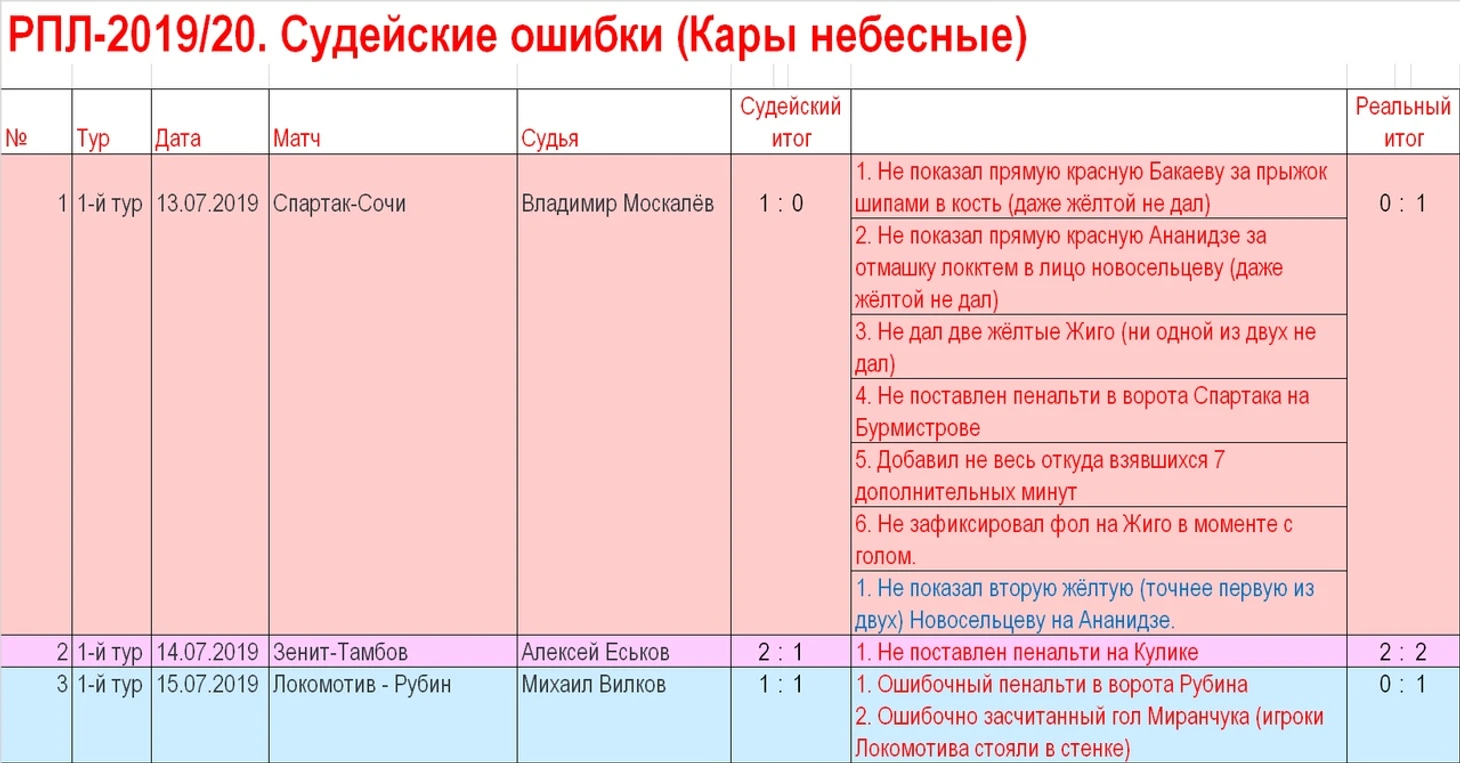 П.С. Ошибки, не повлиявшие на результат. В 5 матчах из 8 судьи Егоров допустили серьёзные ошибки.