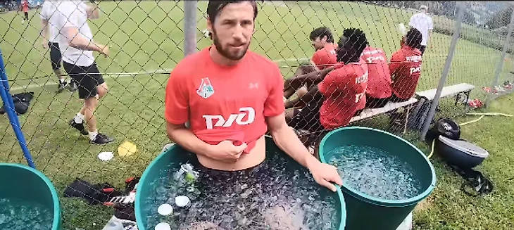 Прямо у поля стоят ледяные ванны. Крыховяк расслабляется.