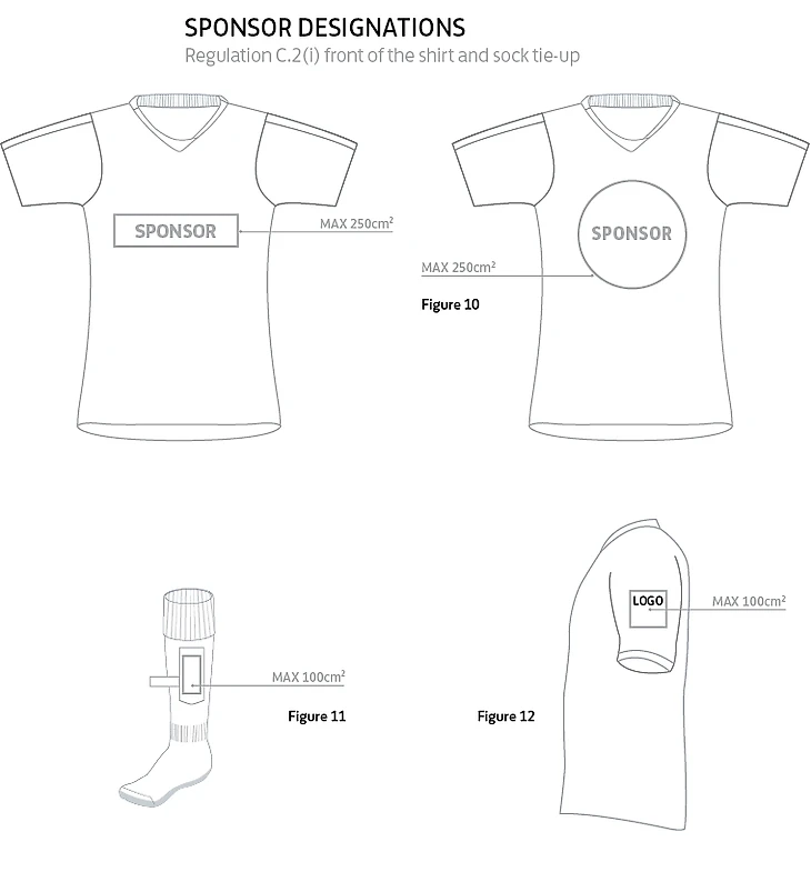 Даже если опустить тот факт, что на скринах ассоциации нет варианта с диагональным размещением рекламы, остается площадь спонсорской надписи на груди – ее максимум составляет 250 квадратных сантиметров.