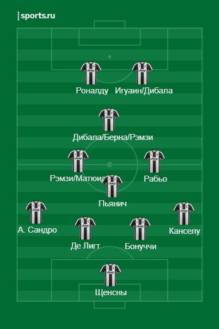 В самом начале мэтру придется решить проблему Криштиану. Роналду уже давно не отрабатывает в прессинге должным образом и, решая эту проблему, в Реале его частенько любили прятать на менее созидательного флангового защитника. Конечно, в матчах с более слабыми командами, которые сами отдадут мяч Юве, проблем с этим возникнуть не должно, но прессинг португальца, который очень часто любит просто выключаться из эпизода, принес Маурицио головную боль уже прямо сейчас. Другое решение проблемы Роналду, которое не просто напрашивается, оно абсолютно базисное и неоспоримо должно быть уже принято – перевод Криштиавну на место ЦН.