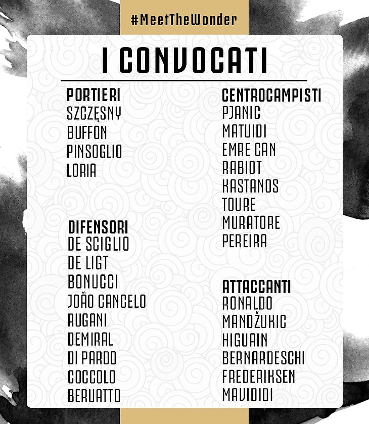 В общей сложности 27 игроков были приглашены для участия в летнем туре «Ювентуса», который стартует сегодня вылетом в Сингапур. В списоке отсутствуют Маттиа Перин, Дуглас Коста, Сами Хедира, Марко Пьяца, Джорджо Кьеллини и Аарон Рэмси. Они остаются в Турине, чтобы продолжить свои программы восстановления.