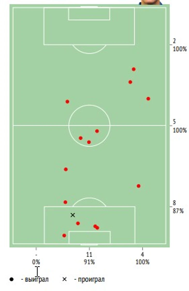 На этот раз ситуация чаще была другой. При владении «Спартака» на левом фланге Рассказов располагался ближе к центру, что несколько раз позволяло ему оказываться вне контроля центральных полузащитников «Ростова» и свободно получать мяч с возможностями для острого решения (3 острых передачи в матче, 1 из опорной зоны соперника).
