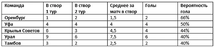 Тоже самое с Уфой – дали ударить в створ два раз – получите гол. Крыльям Советов, Уралу и Тамбову точно хватит 3 ударов в створ для гола.